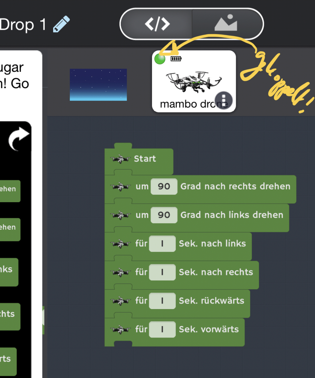 Anleitung 3: Drohnensteuerung: Mit der App Tynker lassen sich diverse Roboter steuern. Unter anderem die Parrot Mambo Minidrohne.