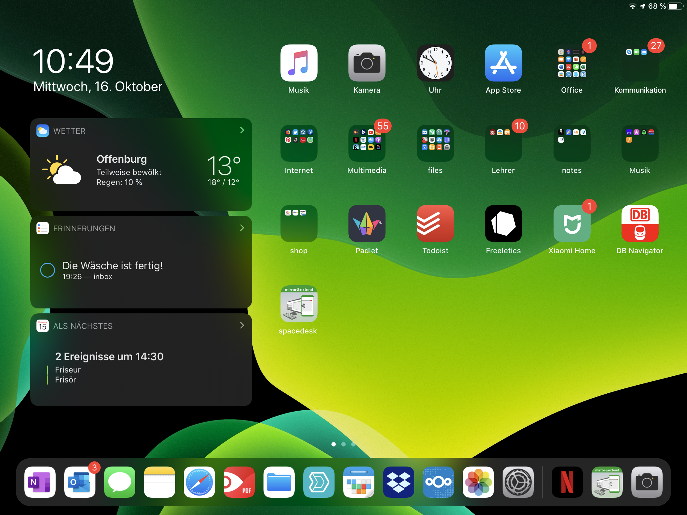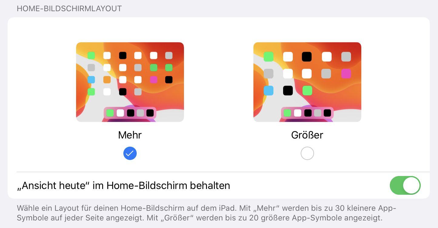 Vor allem, wenn sich viele Apps auf dem iPad befinden, verliert man irgendwann den Überblick. Aus diesem Grund empfiehlt es sich, die vorhandenen Apps übersichtlich zu organisieren und zu strukturieren. Man hat die Möglichkeit die Position eines App-Symbols zu verändern (auch auf die nächste Desktopseite), Apps in Ordnerstrukturen zusammenzufügen, Apps kleiner darstellen zu lassen (seit iPadOS) und Apps vom Gerät zu löschen.