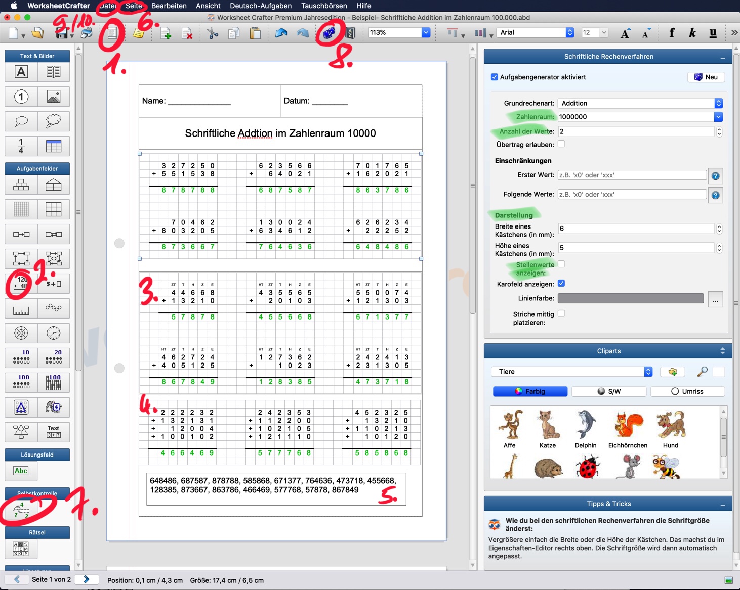 Üben sie die Anwendung des Worksheet Crafters mit folgendem Beispiel: