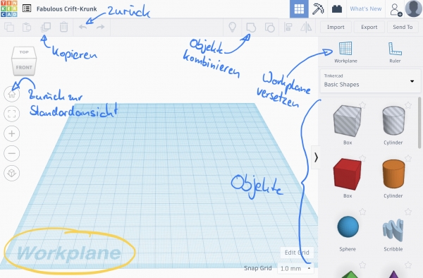 TinkerCAD ist ein einfaches, browserbasiertes Programm zum Entwerfen von 3D-Strukturen. Aus TinkerCAD können die Daten direkt als .stl Datei für den 3D-Druck exportiert werden. Für die Nutzung empfiehlt sich ein PC/Laptop mit Maus. Auf Tablets ist die Nutzung aber ebenfalls möglich, wenn auch nicht ganz so komfortabel.
